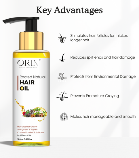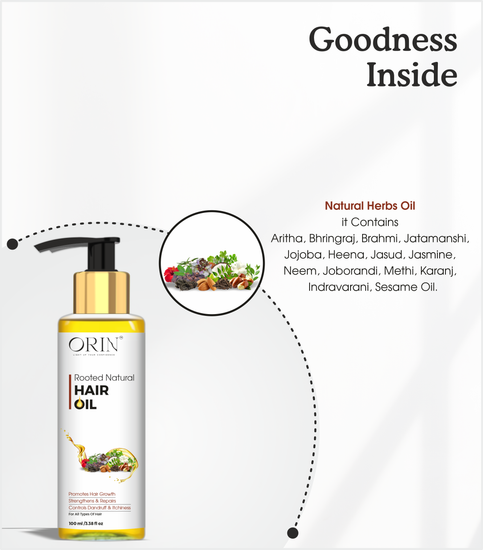 Orin Rooted Natural Hair Oil is a nourishing and strengthening hair oil made with a blend of natural botanical extracts and essential oils to promote healthy scalp, reduce hair fall, and enhance hair growth.